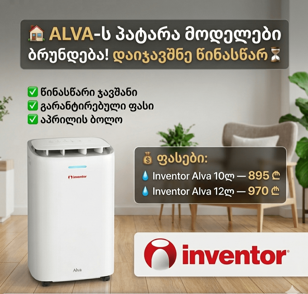 ❗️მეგობრებო, თქვენი ფავორიტი INVENTOR ALVA – ს კომპაქტური და ეფექტური ნესტის შემწოვი აპარატები მაღალი მოთხოვნიდან გამომდინარე რეკორდულ დროში გაიყიდა! 🟥 იმისთვის, რომ მომდევნო პარტია არ გამოტოვოთ, ვიწყებთ წინასწარ ჯავშნებს აპრილის ბოლოსთვის.