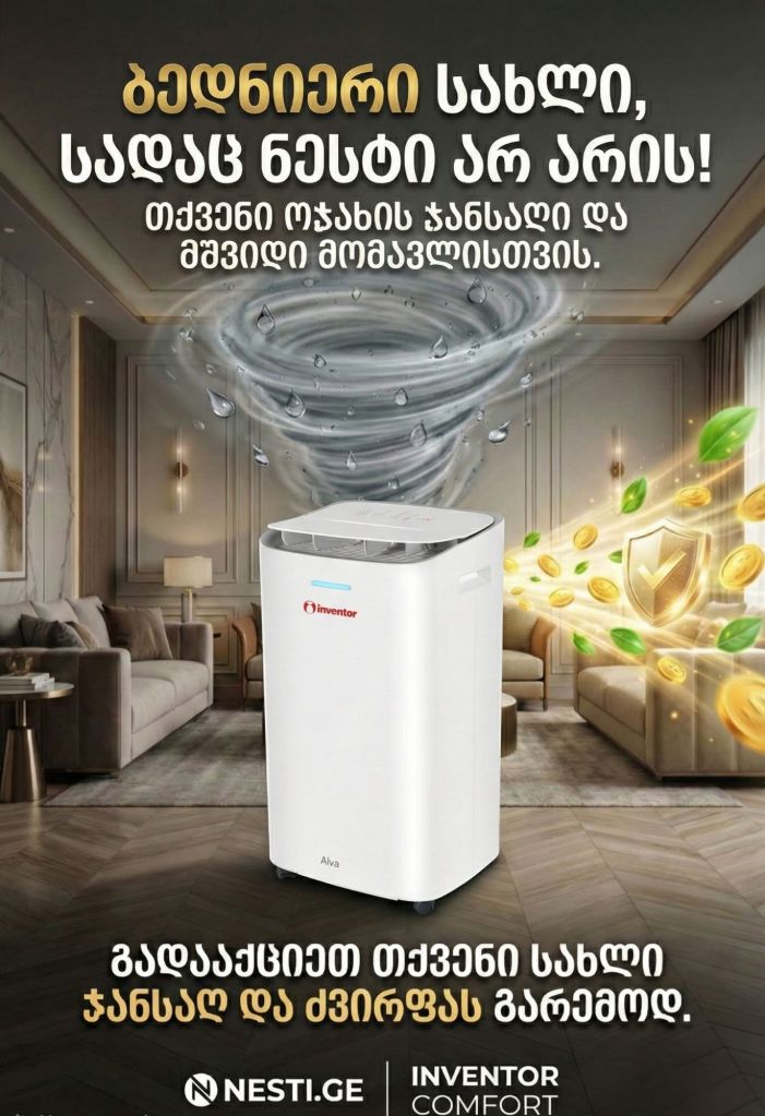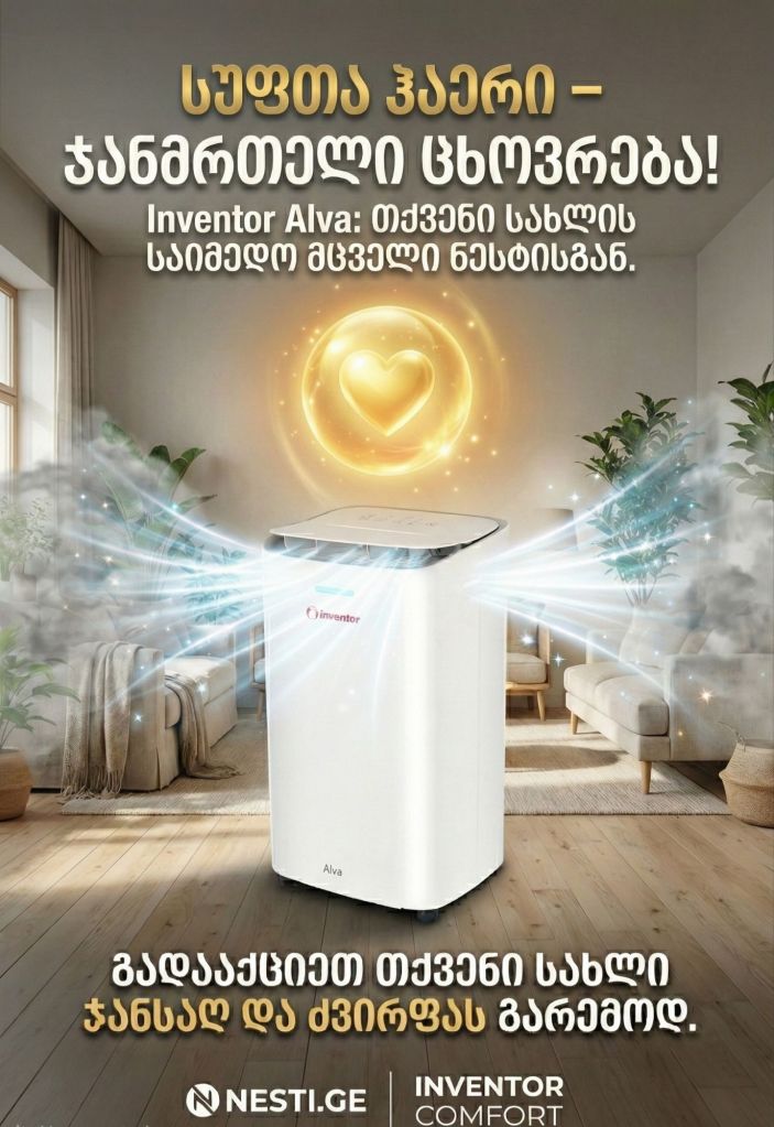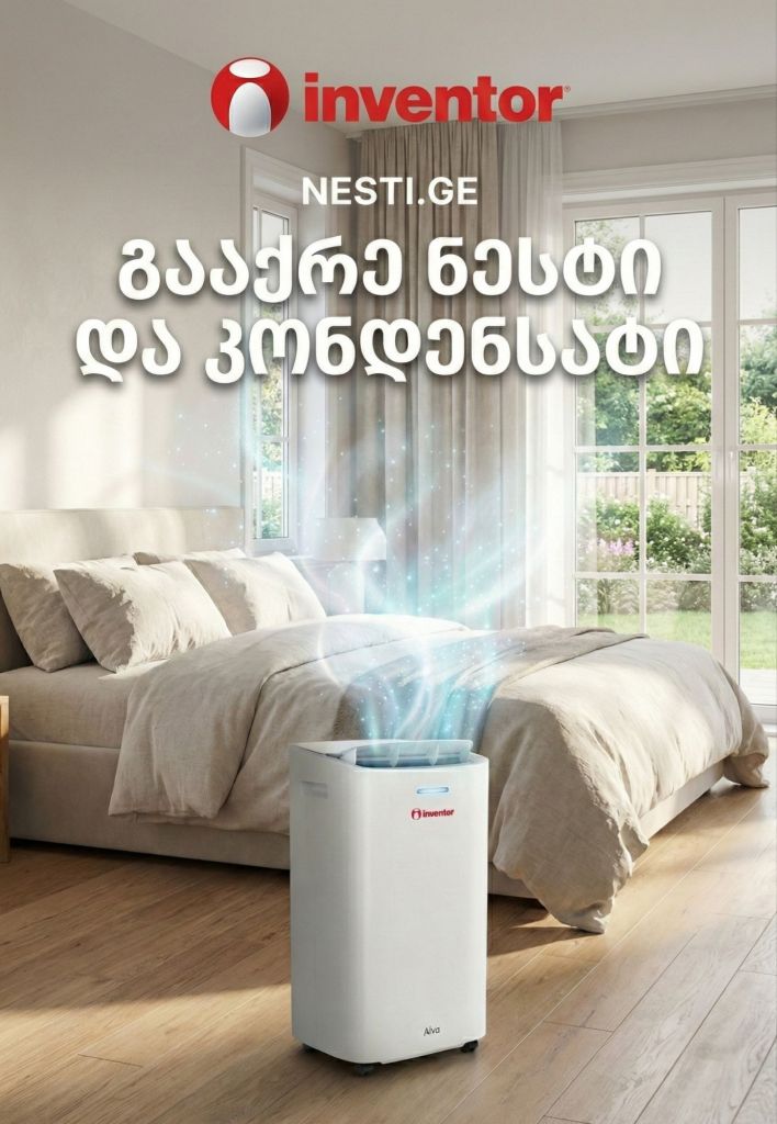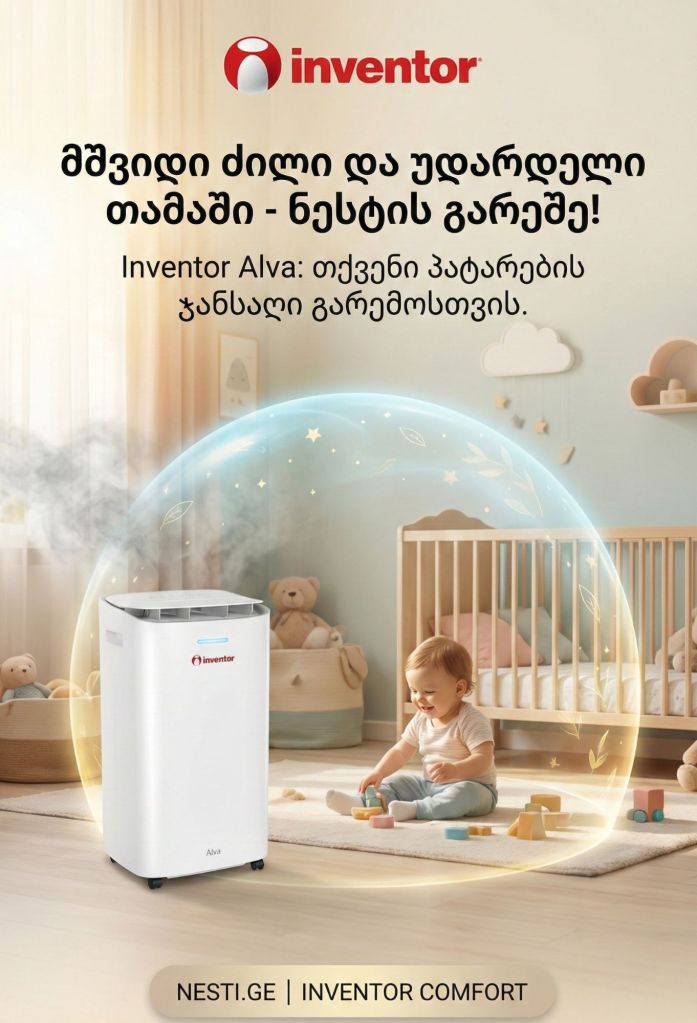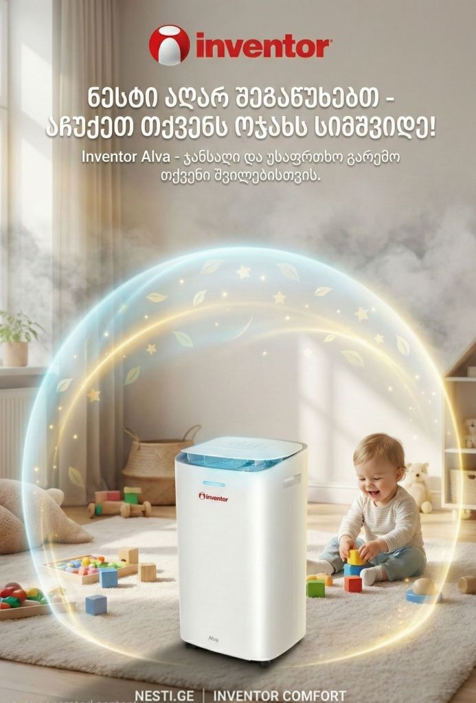 🛡️ თქვენი შვილების ჯანმრთელობა ექსპერიმენტებს არ ექვემდებარება! ❓️იცოდით, რომ ჭარბი ტენიანობა და ობი ბავშვებში ხშირად ხდება ალერგიის და სასუნთქი გზების პრობლემების გამომწვევი მიზეზი? 👨👩👧👦 პატარების ოთახში ჯანსაღი მიკროკლიმატი სასიცოცხლოდ მნიშვნელოვანია. ❗️მაგრამ ფრთხილად! ⛔️ როცა საქმე ბავშვის უსაფრთხოებას ეხება, გადამწყვეტია ტექნიკის ხარისხი. ბაზარზე არსებული გადაუმოწმებელი აპარატები ხშირად ვერ უზრუნველყოფენ რეალურ შედეგს. ✅ რატომ არის აუცილებელი სერტიფიცირებული პროდუქცია? მხოლოდ სერტიფიცირებული ბრენდი, როგორიც გახლავთ Inventor – ი, გაძლევთ გარანტიას, რომ: 🌿 აპარატები დამზადებულია ეკოლოგიურად სუფთა და უსაფრთხო მასალებისგან. 🌿 რეალურად ასრულებს დანაპირებს და ეფექტურად ებრძვის ნესტს. 🌿 არის უხმაურო და უსაფრთხო ბავშვის ოთახისთვის. ❗️ნუ გარისკავთ აირჩიეთ Inventor-ის საერთაშორისოდ აღიარებული ხარისხი თქვენი პატარას მშვიდი ძილისთვის. 🛒 შეიძინეთ ოფიციალურად 5 წლიანი გარანტიით და 100% – იანი შედეგით; 🛒ბრენდ ონლაინ მაღაზია Nesti.ge 🟥 ცენტრალური ოფისი და ბრენდ შოურუმი თბილისი. ალ.ყაზბეგის გამზ. 31 ( სამუშაო დღეები და საათები: ორშაბათიდან – პარასკევის ჩათვლით: 10:00 სთ – დან – 18:00 სთ-მდე ) შაბათ – კვირას პროდუქციის ნახვა ადგილზე შესაძლებელია წინასწარი სატელეფონო შეთანხმებით. 📱 599 307 217; 599 307 417 🟥 ბრენდ მაღაზია ბათუმი. მელიქიშვილის 63 ( სამუშაო დღეები და საათები: ყოველდღე შაბათ – კვირის ჩათვლით: 10:00 სთ – დან – 20:00 სთ-მდე ) 📱 558 66 14 99; 568 83 05 69 🛻 მიწოდება უფასოა საქართველოს ყველა ქალაქში და სოფელში, სახლის კართან !