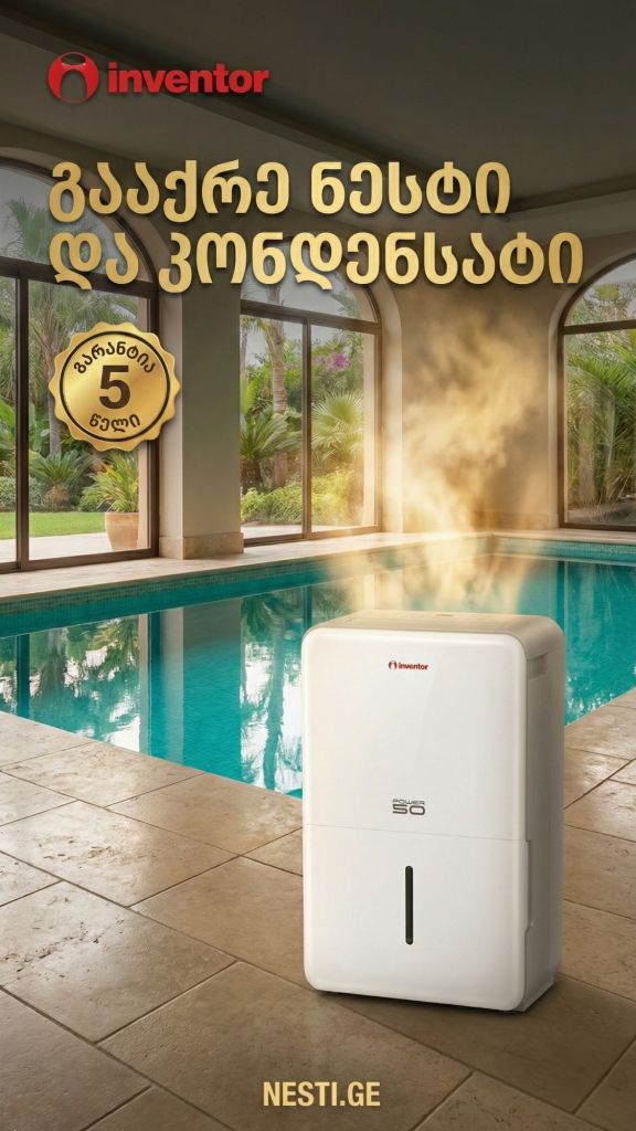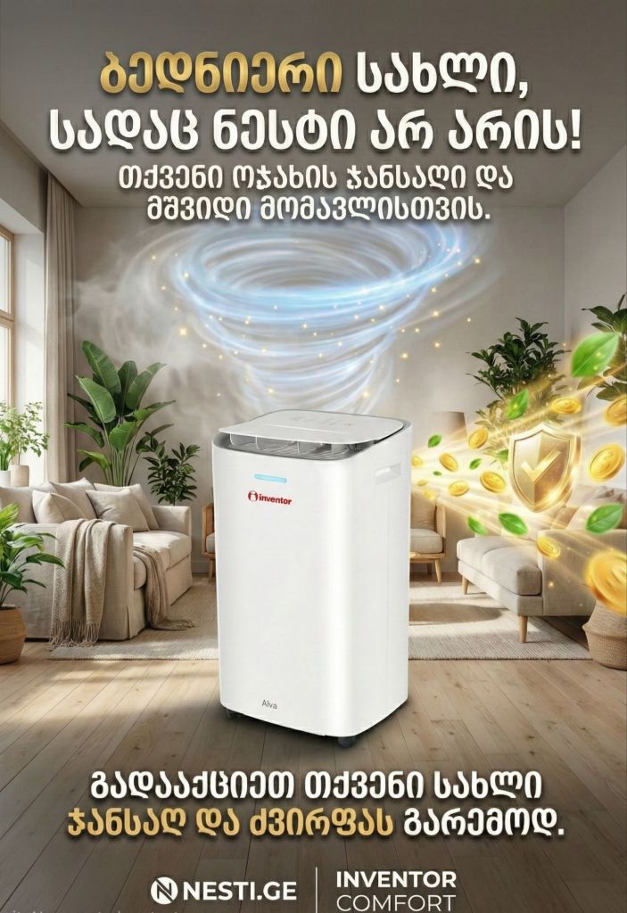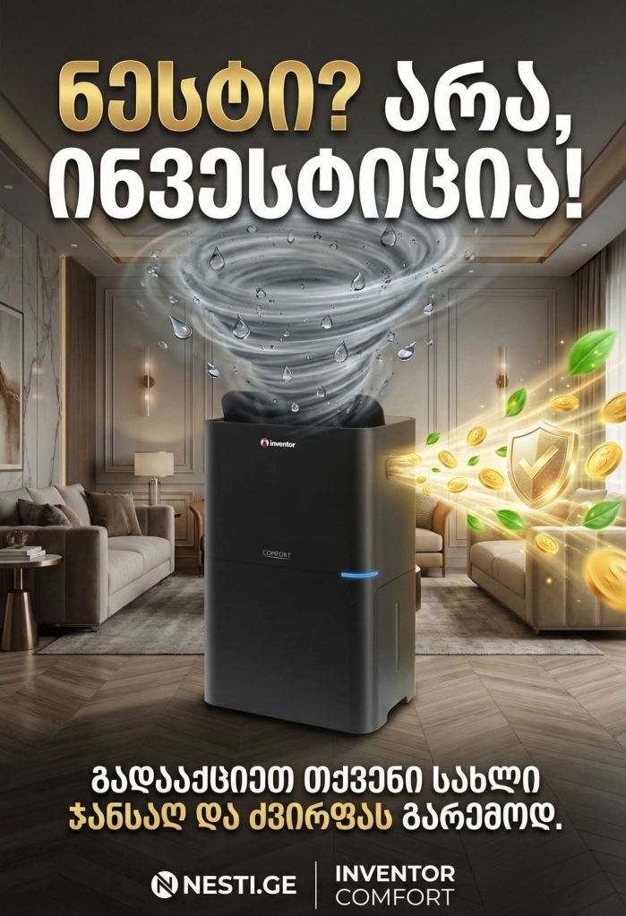 💦 სახლში სუნთქვა ჭირს? იგრძენი განსხვავება პირველივე დღეს! 🌬️✨ 🌞🌿 წარმოიდგინე დილა მშრალი ფანჯრებით და სუფთა ჰაერით. 🟥 Inventor – თან ერთად ეს ფუფუნება კი არა, ყოველდღიურობაა. 🏆 რატომ Inventor? ✨ ️ევროპული, პრემიალური ხარისხი, რომელიც ზრუნავს შენს კომფორტზე. ისრუტავს ზედმეტ სისველეს და სახლს უბრუნებს სიმყუდროვეს. 🛒 შეიძინე აქ: nesti.ge ❗️ნუ გადადებ, ზამთარი ნესტის გარეშე ბევრად სასიამოვნოა!